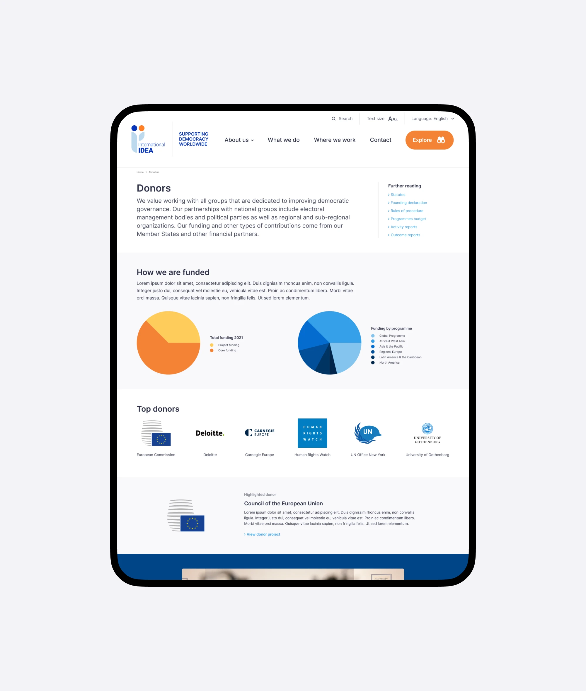 To ensure consistency and quality in the new design for the future, we created a design system documenting all of the new digital assets. The creation of new project pages and initiatives now takes less time, allowing IDEA to focus on their more important tasks.