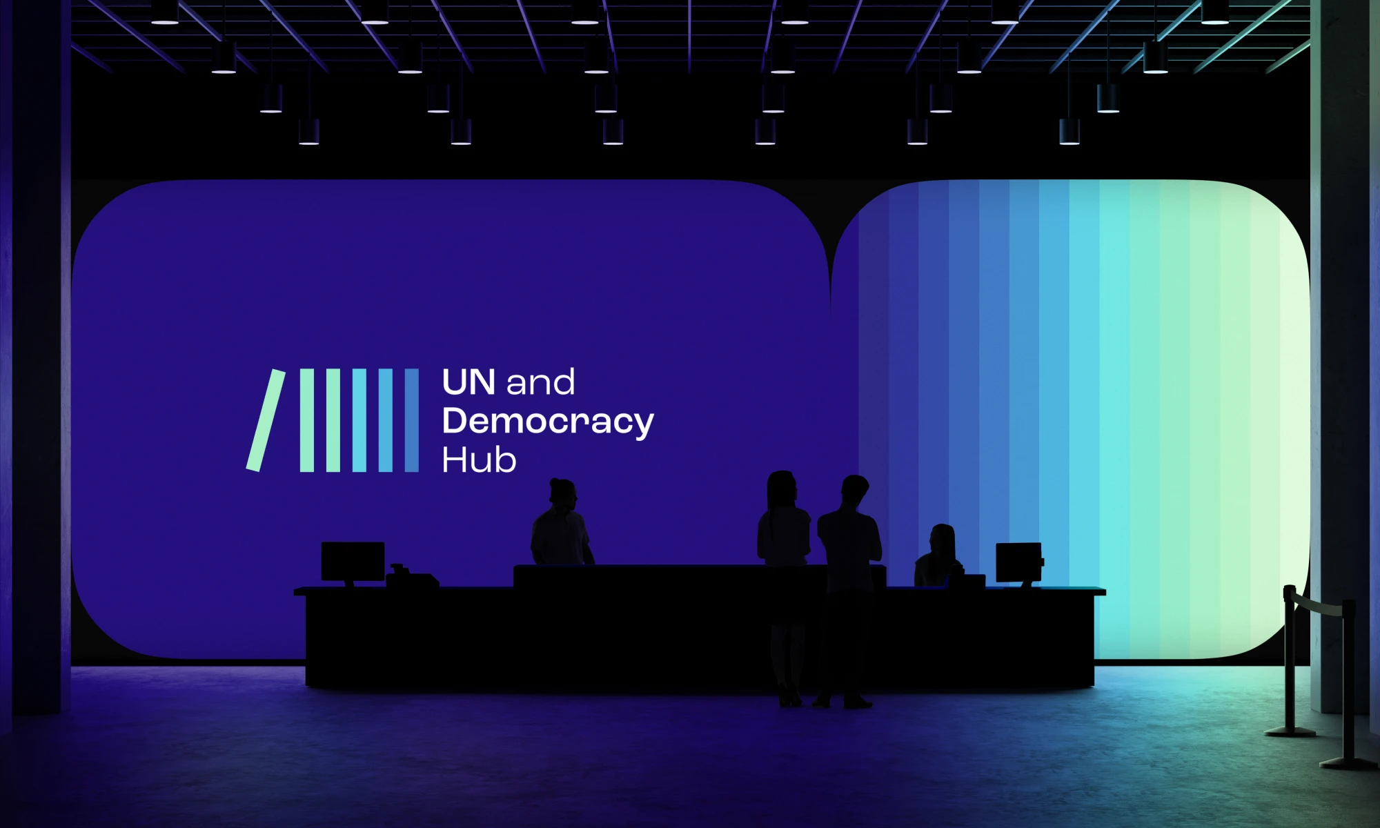The visual style for the UN and Democracy Hub reflects the collaboration between the UN and International IDEA, emphasizing openness, dialogue, and connectivity in an abstract, library-inspired way. Clean geometric forms symbolize the bridging of perspectives, while modern typography ensures clarity and accessibility, creating a distinctive identity for this new global platform.